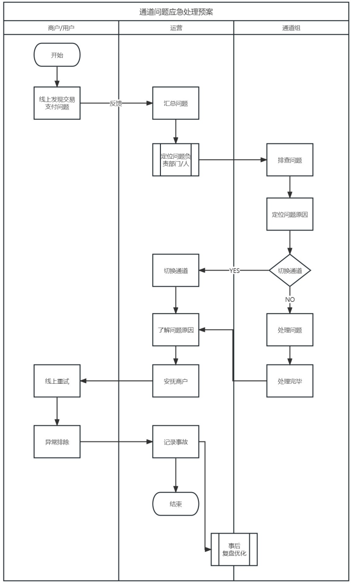专业:应急规范及角色分工清晰;有序:应急流程清楚简单、为可执行的标准化流程;快速:优先恢复通道交易稳定性,其次定位问题和提出解决方案。