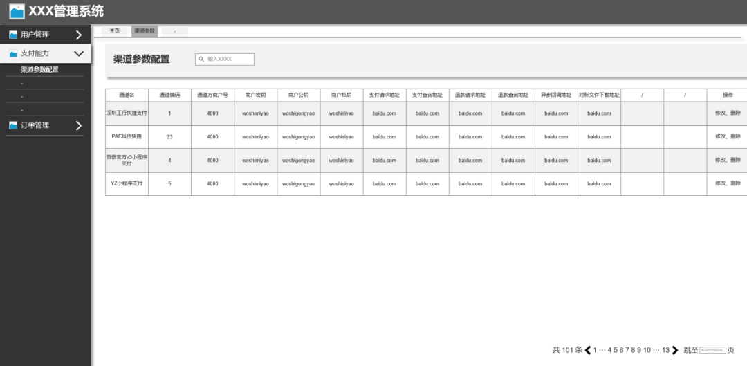 通道参数配置,一般是配置比较敏感的内容,商户号、请求地址等,记得做好菜单或者功能权限,专人专用。