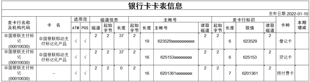 银行卡号检测正确之后,就从10位开始遍历卡bin表,依次递减至6位,直到找到唯一卡bin为止,并返回该卡bin对应的银行卡信息和所属银行。(目前国内银联卡,因银行众多,特别是村镇银行的存在,BIN长度以6位占绝大部分,另外还存在7、8、9、10等位数卡BIN)。