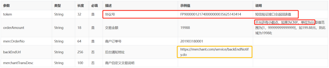 拿到签约协议号,则可以根据该协议号进行发起扣款,咱们看接口说明,需要特别注意交易金额这个字段,单位是分,千万要搞清楚交易金额的单位,别摆大乌龙。