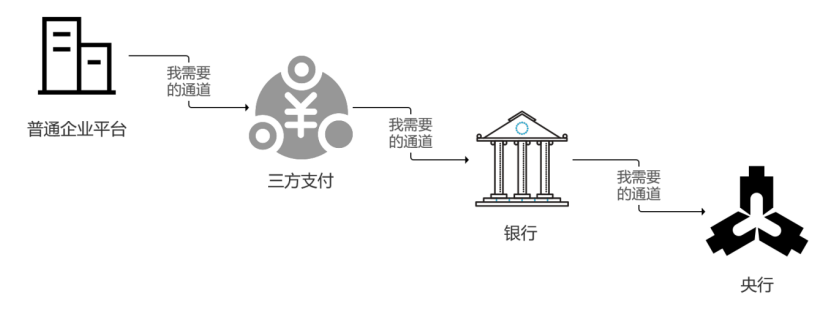 对于三方支付机构:那些有支付牌照,能对外提供支付能力的三方机构,他们需要的通道则是金融机构(银行、网联、银联)的核心系统。