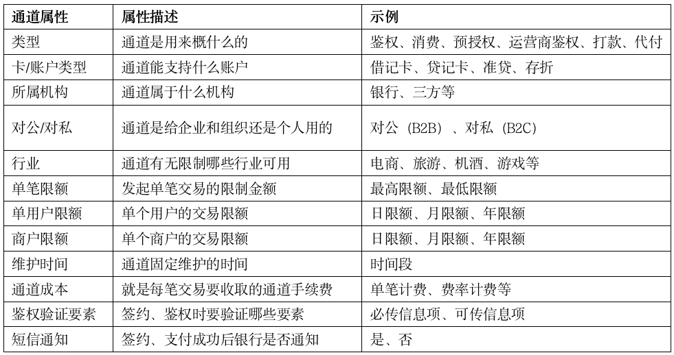 选通道也是,要知道通道都有哪些属性,这些属性就是我们在选择时要思考的维度,这些属性也是后续路由去判断的维度依据。
